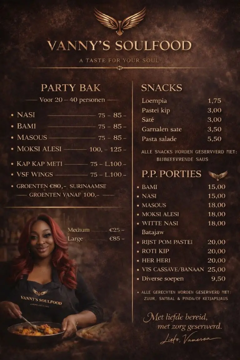 De website van Vanny's Soulfood is in aanbouw maar we zijn gewoon bereikbaar voor al uw bestellingen.